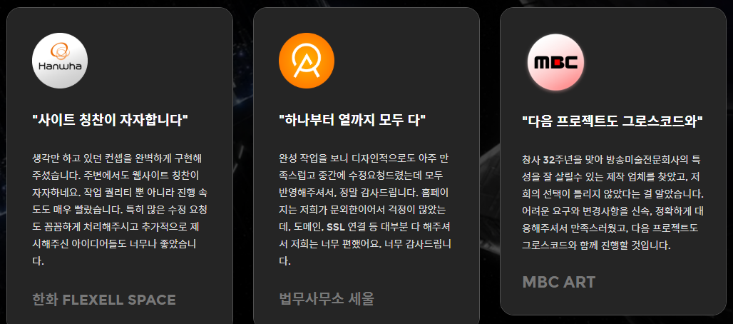 회사홈페이지 제작리뉴얼에서 이처럼 제3자의 구체적인 이야기는 강력한 설득력을 지닙니다.