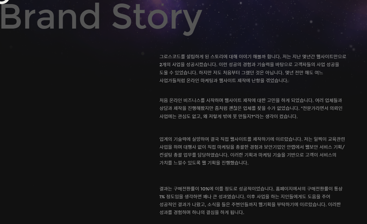 이런 이야기가 진솔하게 담긴 웹사이트는 단순한 홍보를 넘어, 기업의 신뢰를 쌓는 역할을 하죠