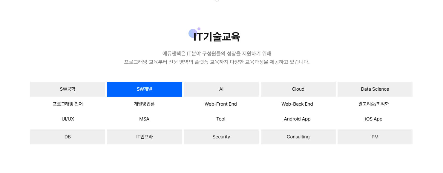 또한 정보 탐색을 편리하도록 별도의 과정 검색 페이지를 만들어 사용자가 원하는 정보를 모두 취합, 분류하여 볼수 있도록 구성하였습니다.