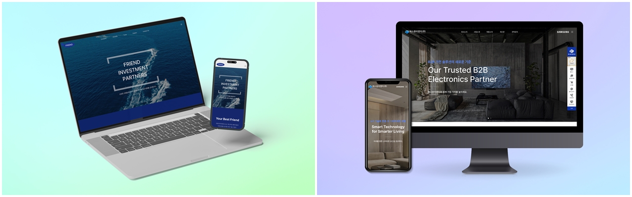 저희는 B2B 회사 홈페이지 제작사로서 대기업, 중견기업, 스타트업의 다양한 업종의 웹사이트 구축을 담당하고 있습니다.