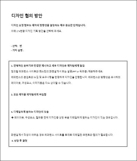 마지막으로, 제작업체에게 꼭 전달하고 싶은 추가 요청사항이나 참고정보를 정리합니다.